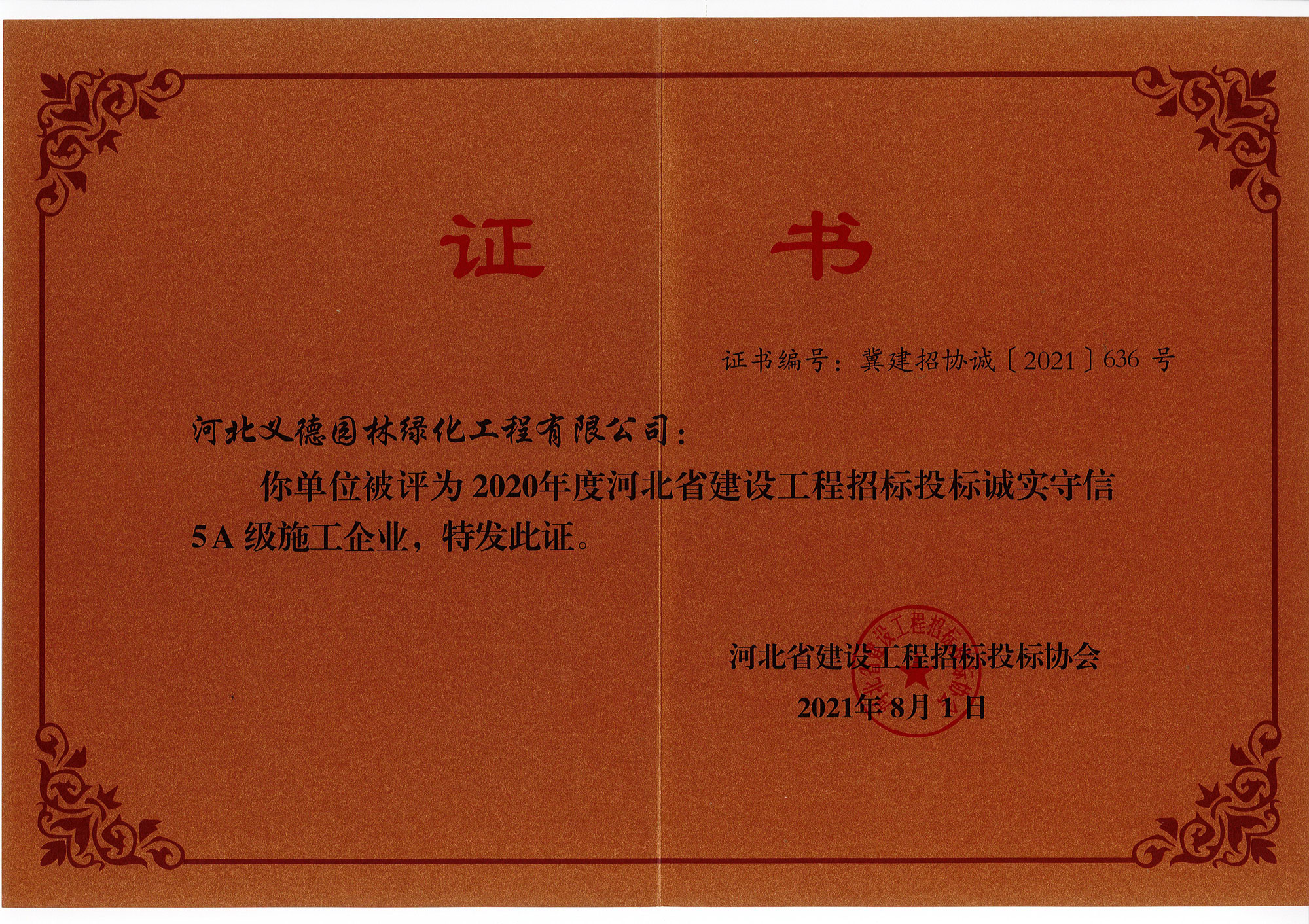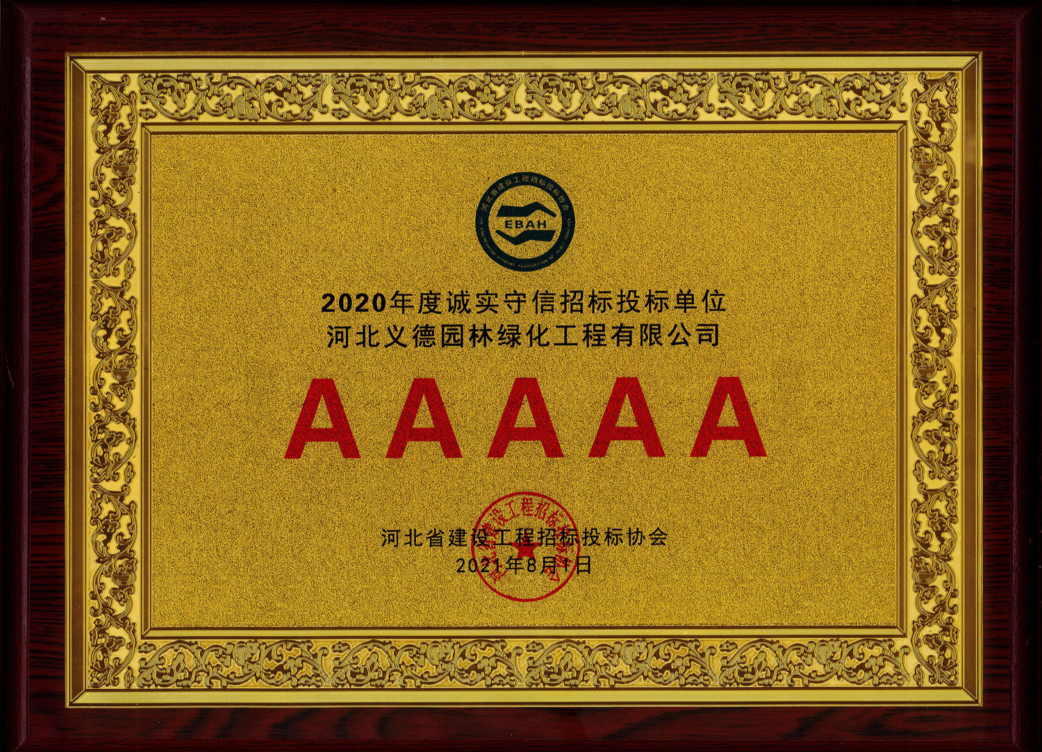 近幾年來我公司被授予2019年-2022年河北省扶貧龍頭企業(yè)、2018年國家林業(yè)標(biāo)準(zhǔn)化示范企業(yè)、2019年度全國苗圃50強(qiáng)、2018-2019年度河北省林業(yè)重點(diǎn)龍頭企業(yè)、2018年保定市精品特色現(xiàn)代農(nóng)業(yè)園區(qū)、2018年度保定林木種苗協(xié)會授予特色苗圃、2018年度北方十佳特色苗圃、2016-2019年河北省建設(shè)工程招標(biāo)投標(biāo)誠實(shí)守信5A級施工企業(yè)等榮譽(yù)稱號,2017年保定市林木種苗龍頭企業(yè)、石家莊市2017年度優(yōu)秀園林企業(yè)。